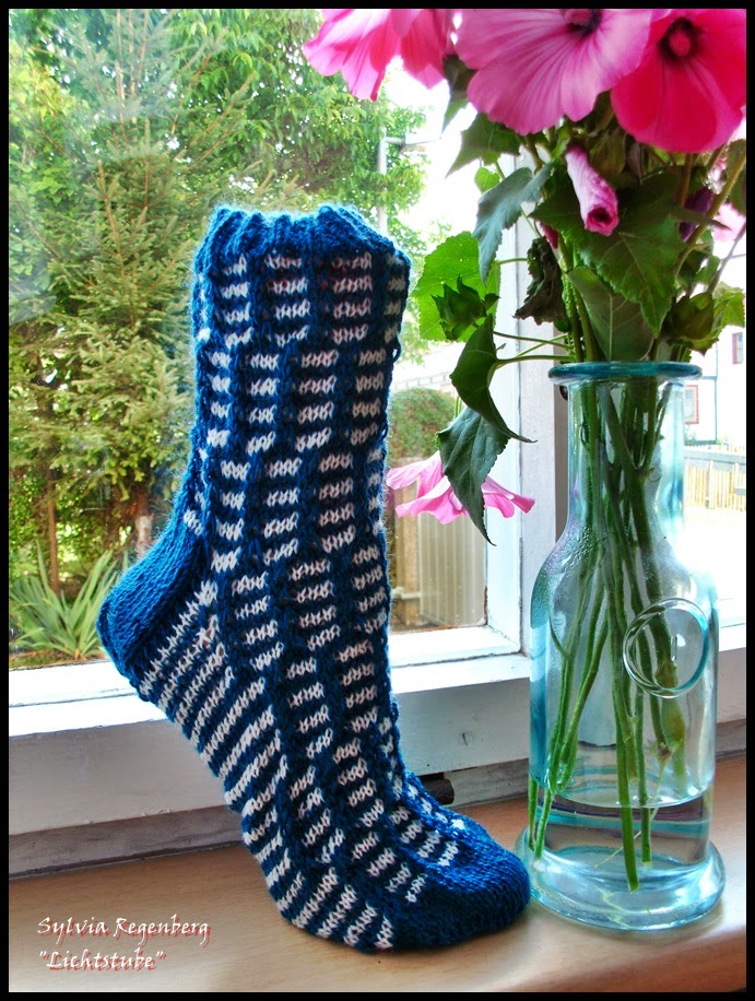 Ich habe beschlossen, das Muster am Fuß fortzusetzen. Zu beachten ist nur, dass der weiße Wollrest noch ausreicht.