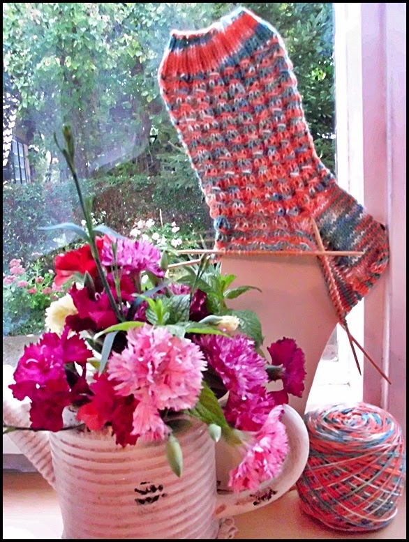 Die Nelken hab ich gestern aus dem Garten mitgebracht und mit 3 Stengeln Pfefferminze versehen. Da braucht man definitiv kein Raumspray :).