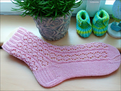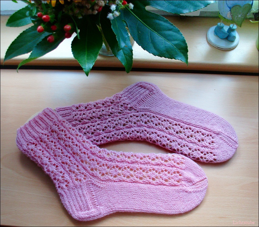 Nach 6 Mustersätzen die verstärkte, nicht versetzte Ferse.