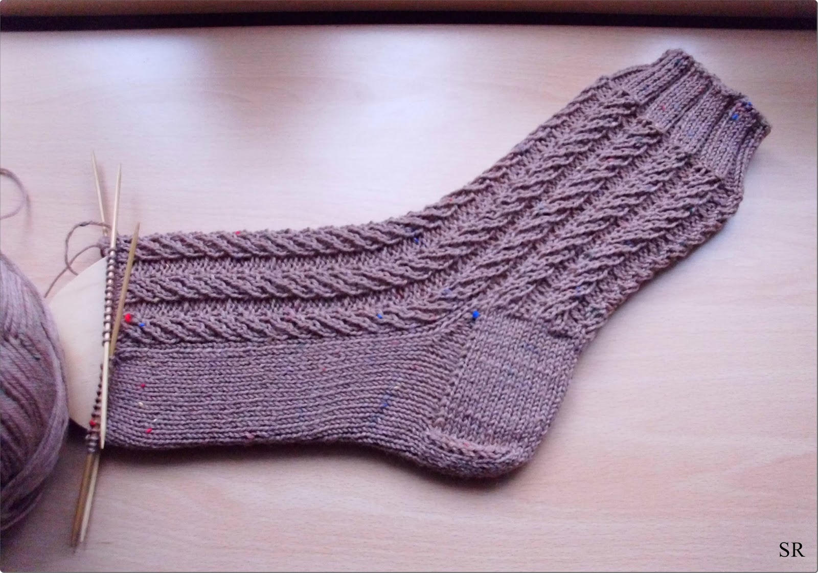 Warum man laut Angabe des Originals 72 Maschen anschlagen soll, ist mir schleierhaft. Mit meiner Nadelstärke 2,5 und 60 Maschen ist man hinreichend gut bedient, das Muster ist schön elastisch.