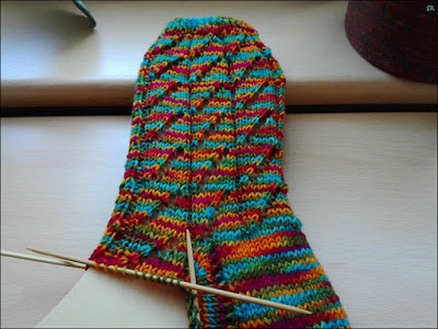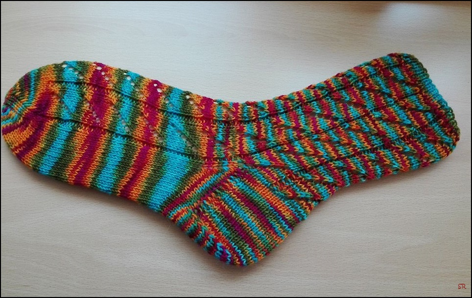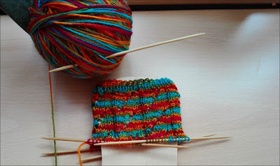Maschen neu sortieren für die Ferse. 5 Maschen von Nadel 2 auf Nadel 3.