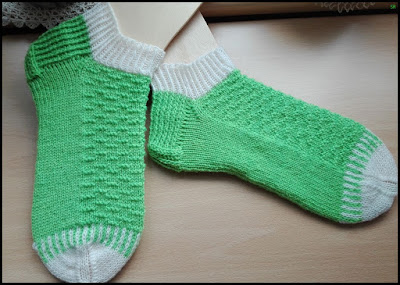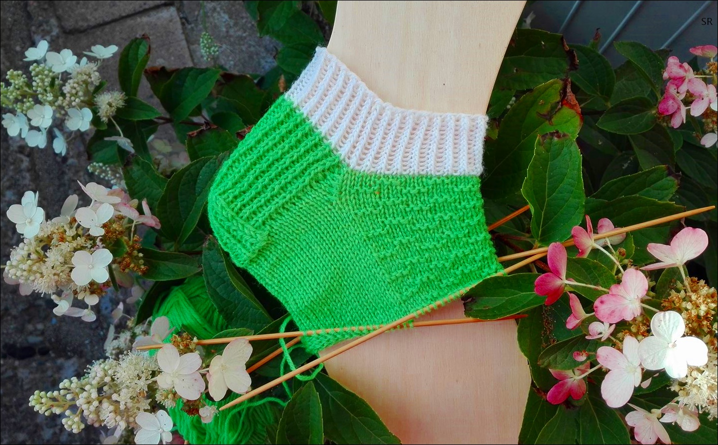Das Söckchen war schon einmal begonnen mit einer rötlich changierenden Wolle.