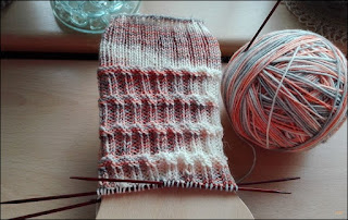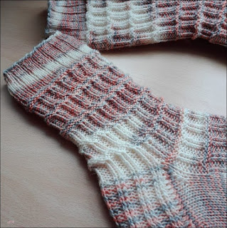 Das Muster gefällt mir sehr gut und auf Deiner hübschen Sockenwolle kommt es auch toll zur Geltung!