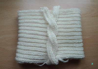 | Knitting ribbons. 5 stitches: k2, p1, k2 (2 o, 1 n, 2 o) Bänder anstricken. 5 Maschen: 2 re, 1 li, 2 re |
