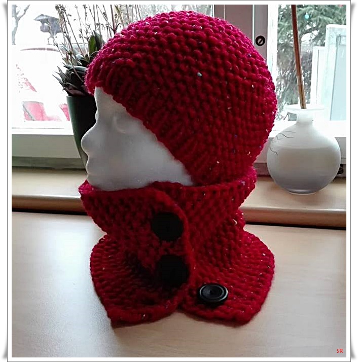 Mütze und Schal im Perlmuster