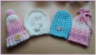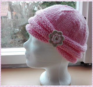 | Kleine Mütze aus Babywolle Muster: 1 Runde 1 re/1 li, 1 Runde li 70 Maschen, Nadel 3,5 |